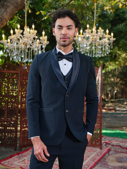 5-Piece Tuxedo Suit with Abstract Handwork