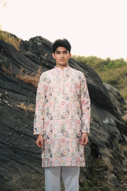 White and Black Emboidery Kurta Set