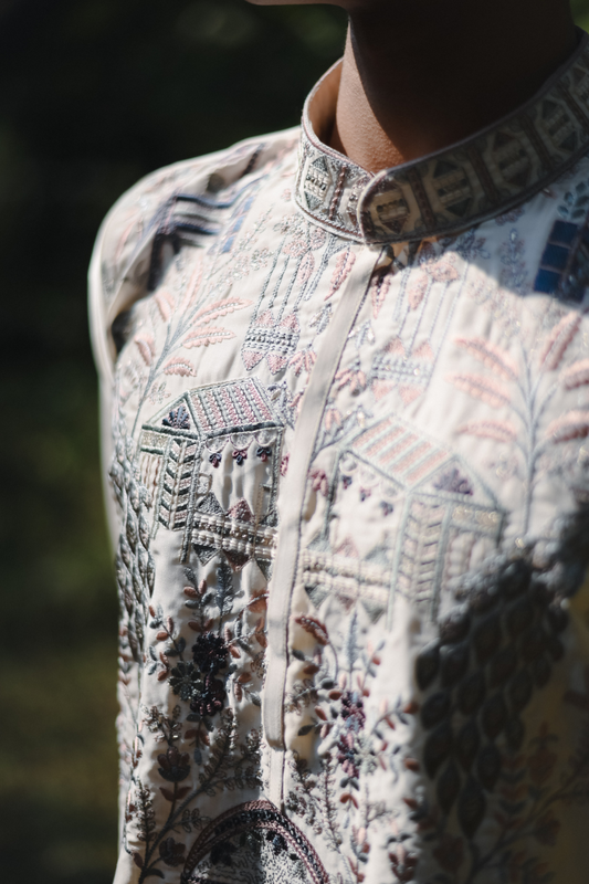 White Armani Kurta–Bottom Set with Hand Work