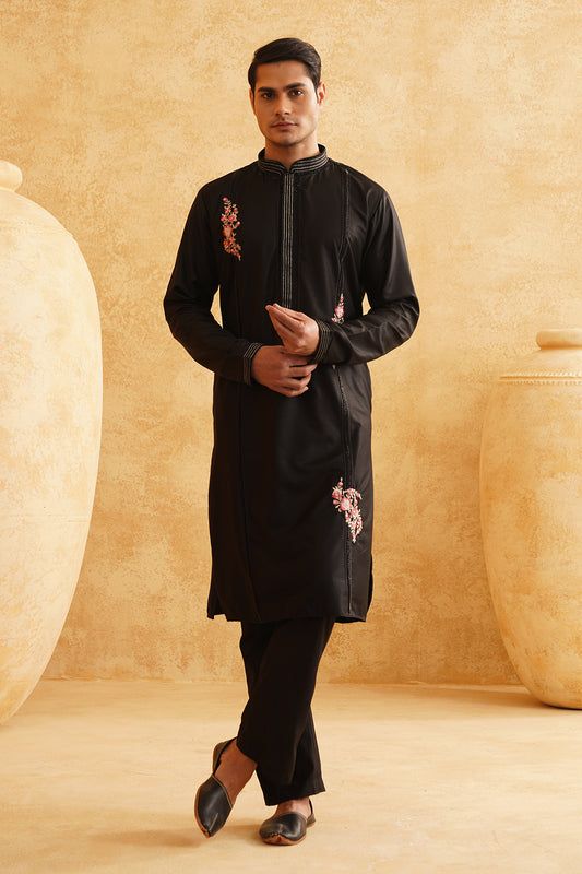 Men's Blue Kenzo Bead Work Embroidered Kurta Set