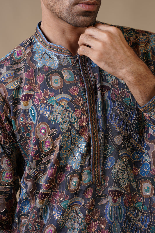 Black Georgette Floral Embroidery Kurta Set