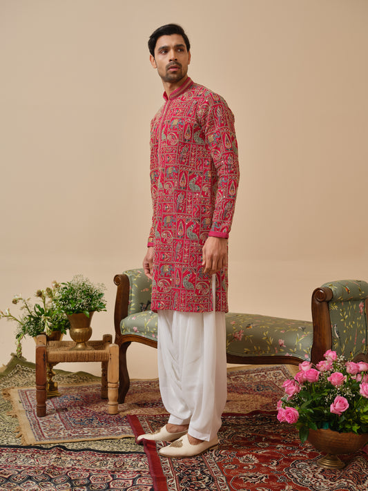 Pink Silk Kurta–Bottom Set with Zari Embroidery