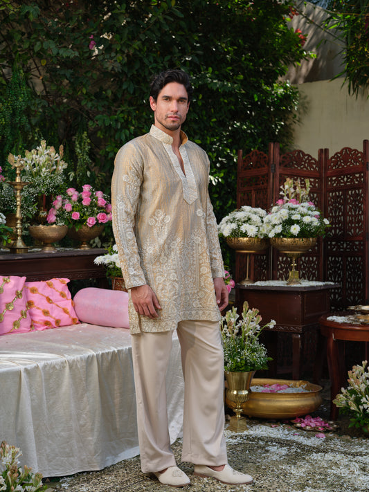 Warm Ivory Tissue Organza Kurta–Bottom Set with Swarovski Embellishment