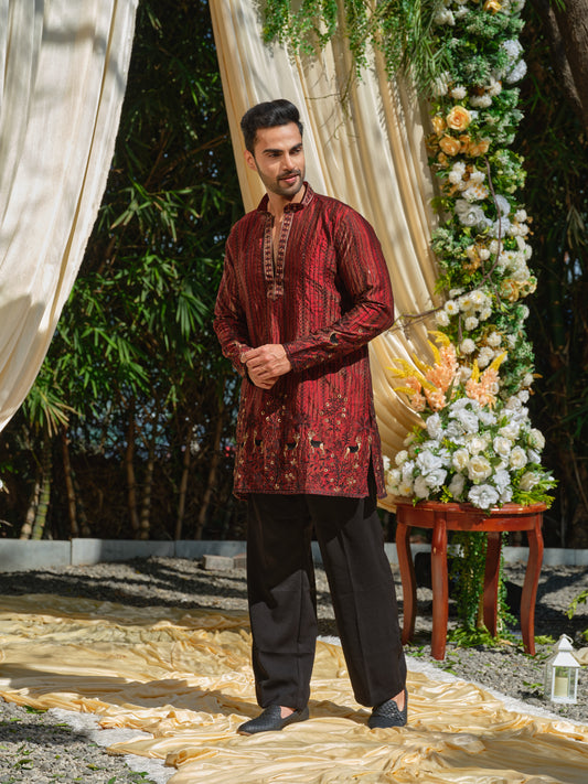 Red Krazy Silk Kurta–Bottom Set with Foil Work & Digital Print