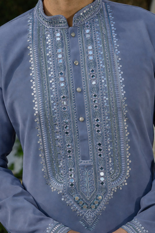 Slate Blue Armani Kurta–Bottom Set with Sequins Mirror Work