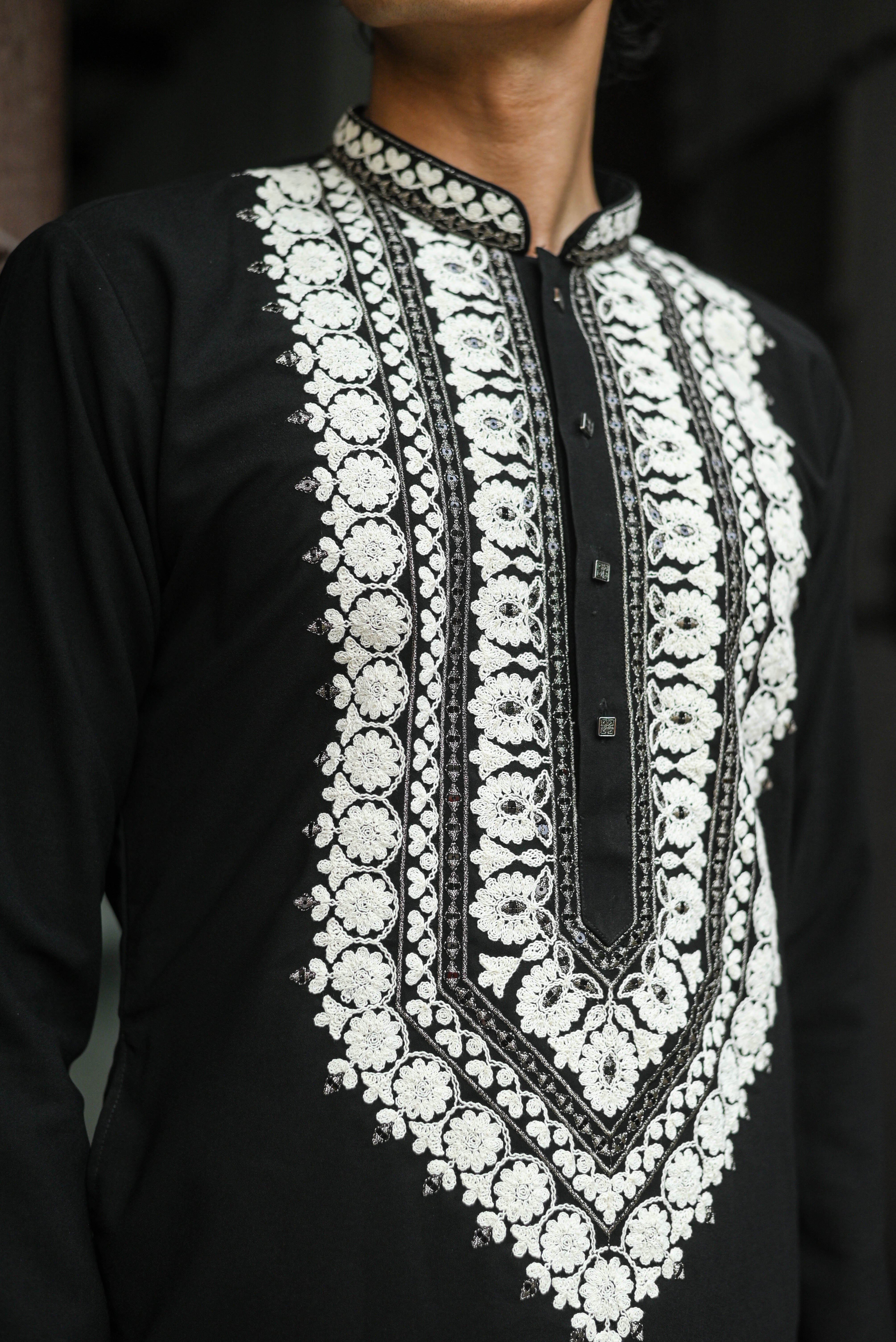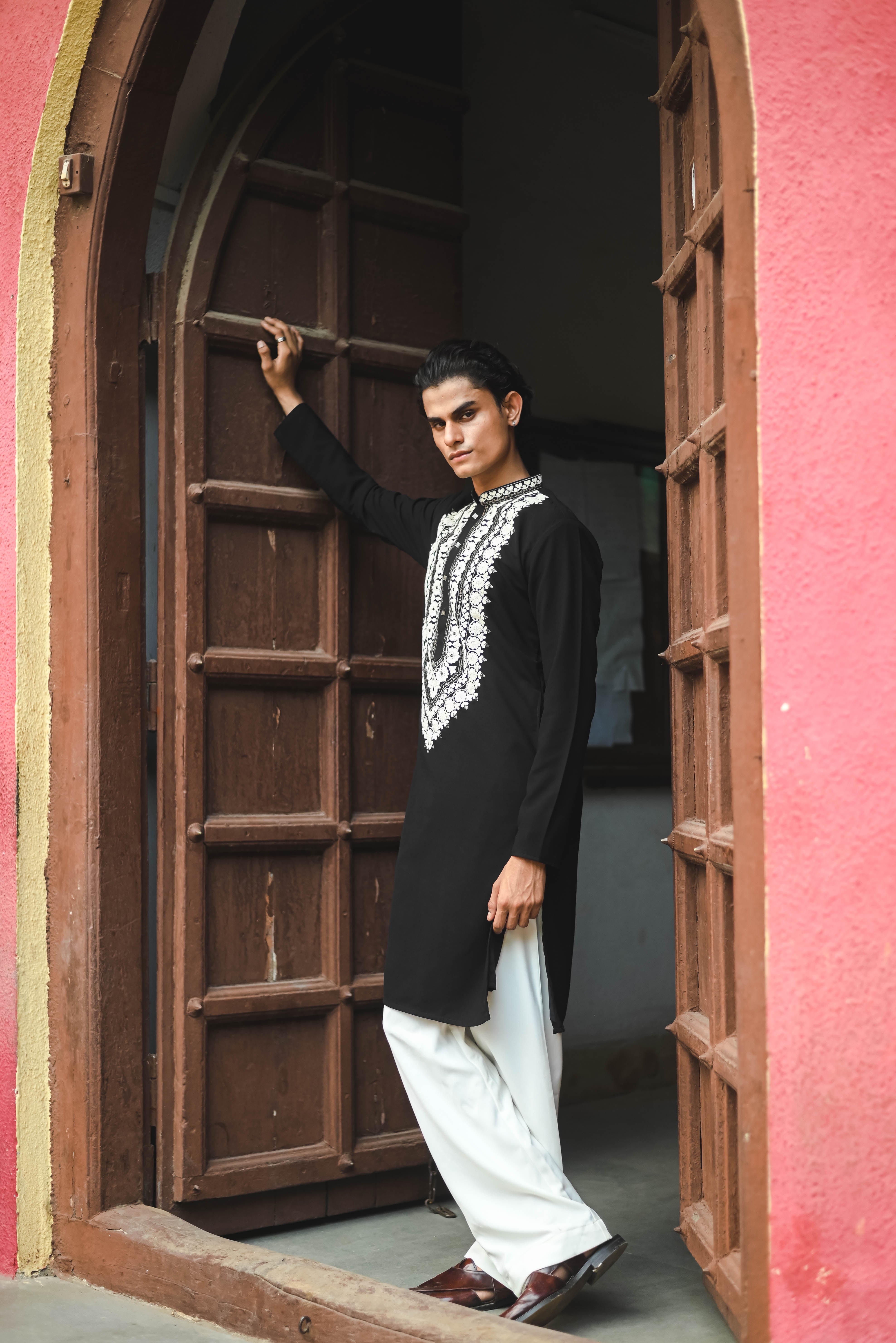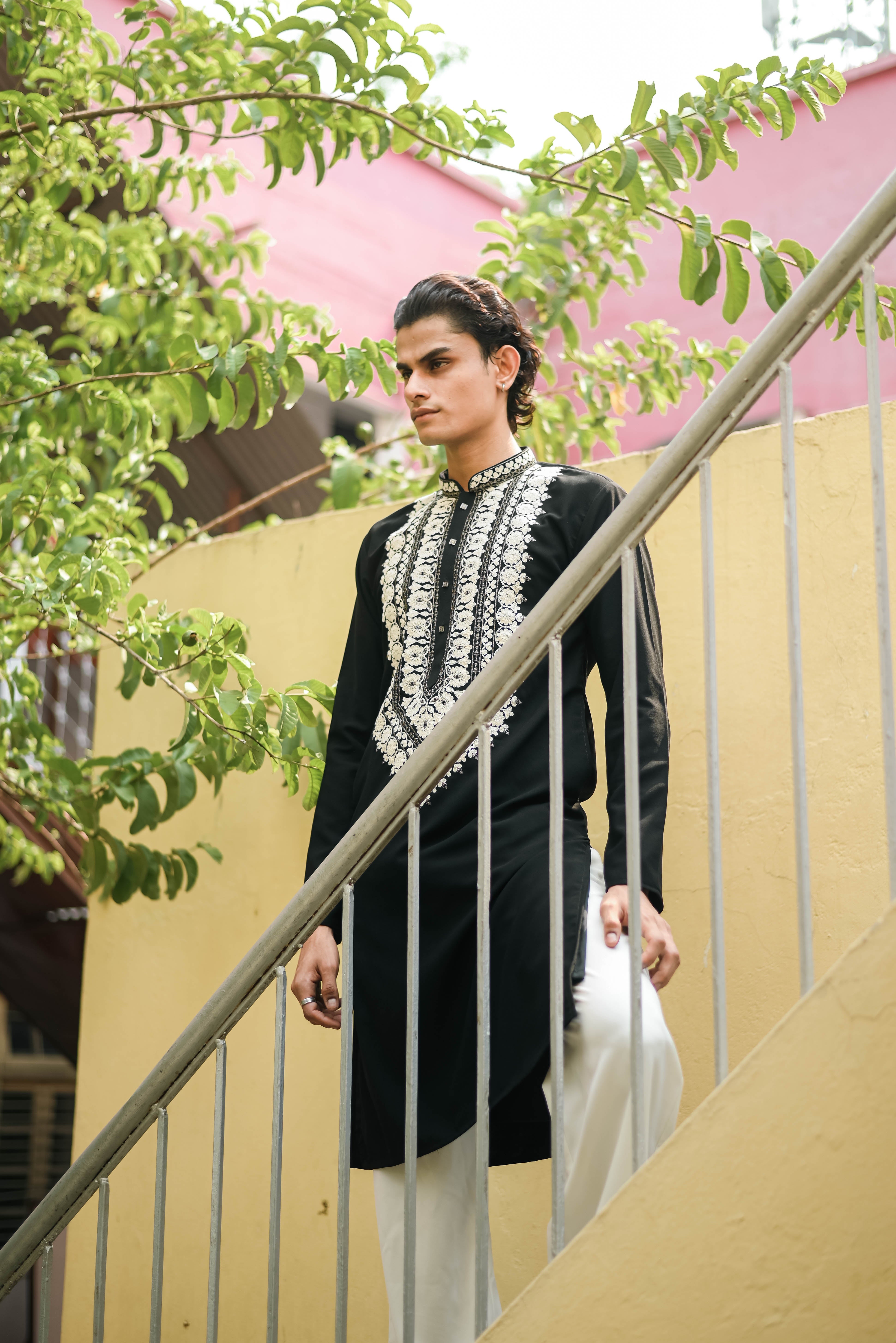 Make a statement this festive season with our Men's Black Kurta, beautifully crafted from premium Japanese fabric. Featuring elegant cording embroidery and a classic V-neckline with a mandarin collar, this kurta blends timeless tradition with a refined modern look. Designed with full sleeves, a straight silhouette, and side slits for ease of movement, itβs the perfect choice for celebrations, family gatherings, or any special occasion. Pair it with the included bottom to complete your festive ensemble.