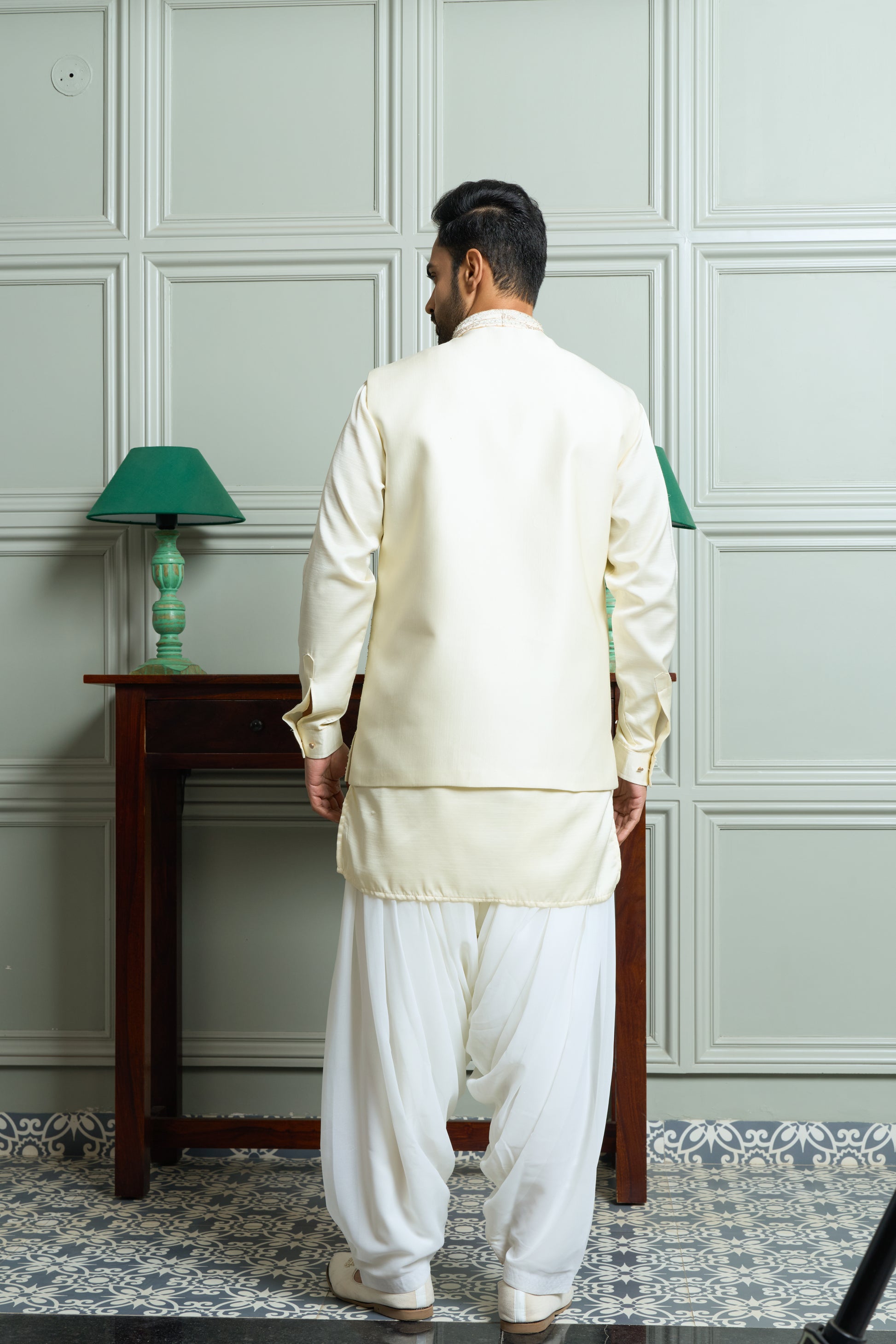 - Sleeves: Jacket-Sleeveless, Kurta-Full Sleeves with Cuffs