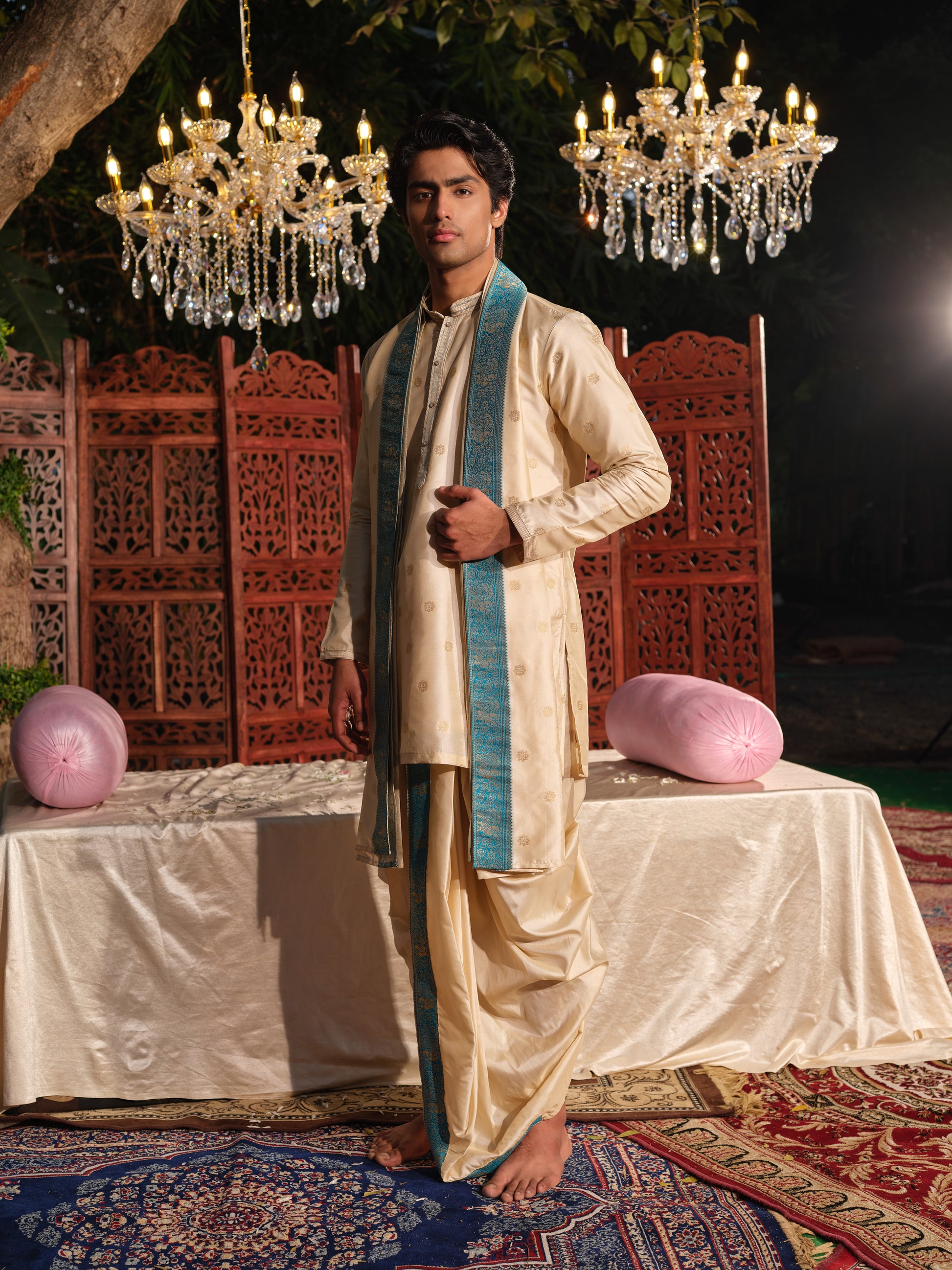 - Bottom Fabric: Jacquard (Dhoti)