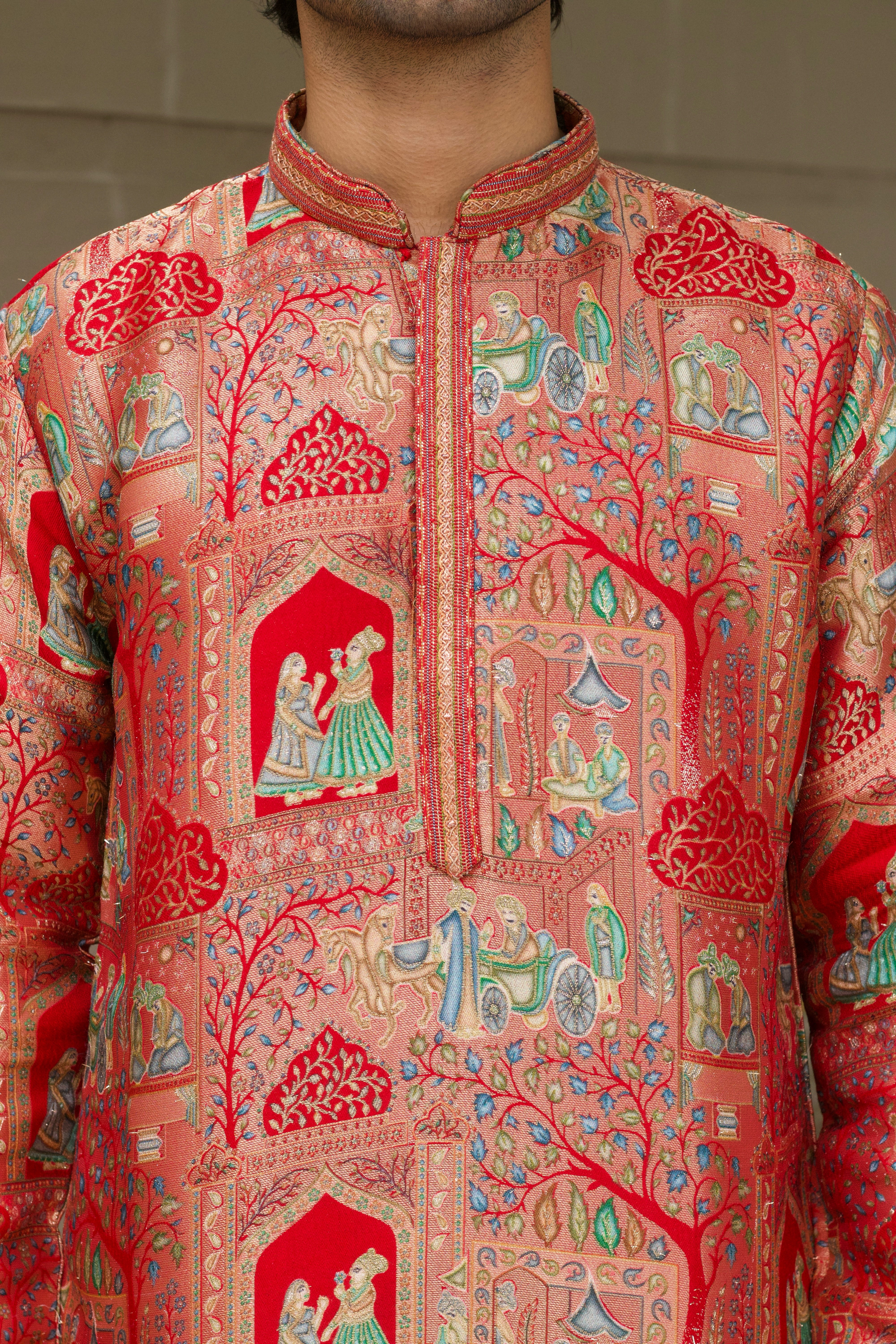Make a bold and timeless statement with this Men's Red Jacquard Kurta Set. Crafted from rich jacquard fabric, this kurta features a refined position print that gives it a subtle yet stylish texture—perfect for festive events, family functions, or traditional gatherings. The vibrant red color adds energy to your look, while the minimal design keeps it versatile and elegant.