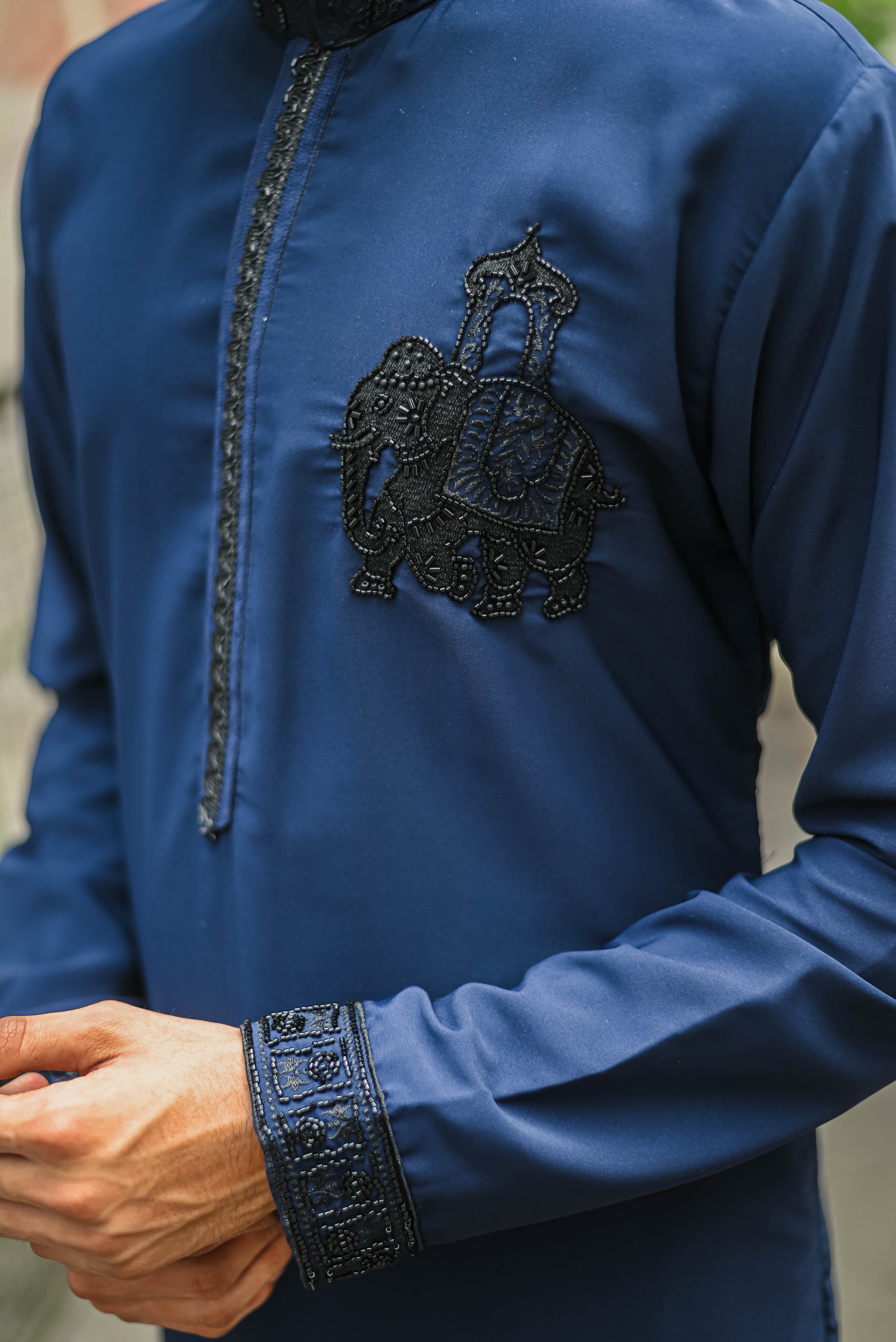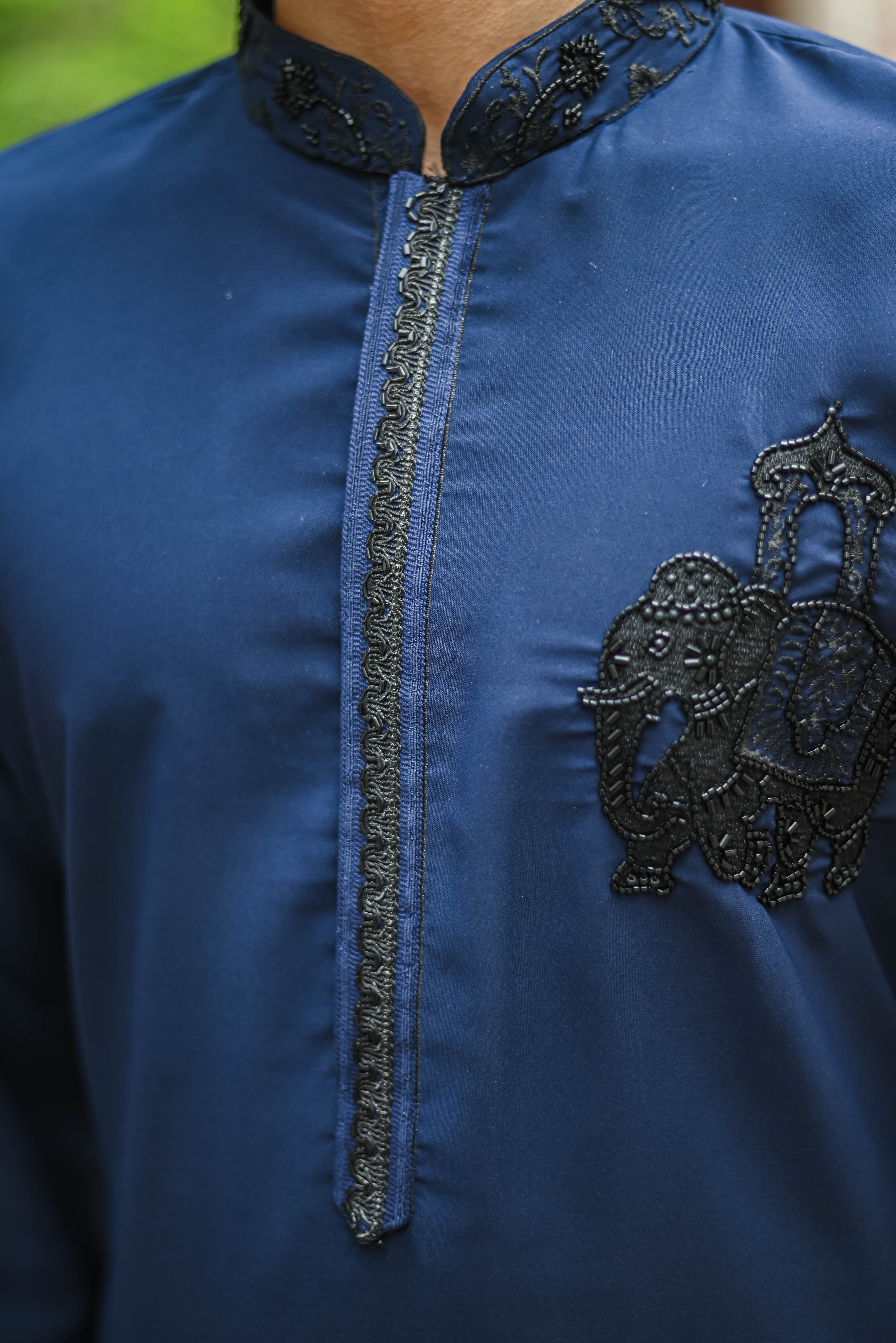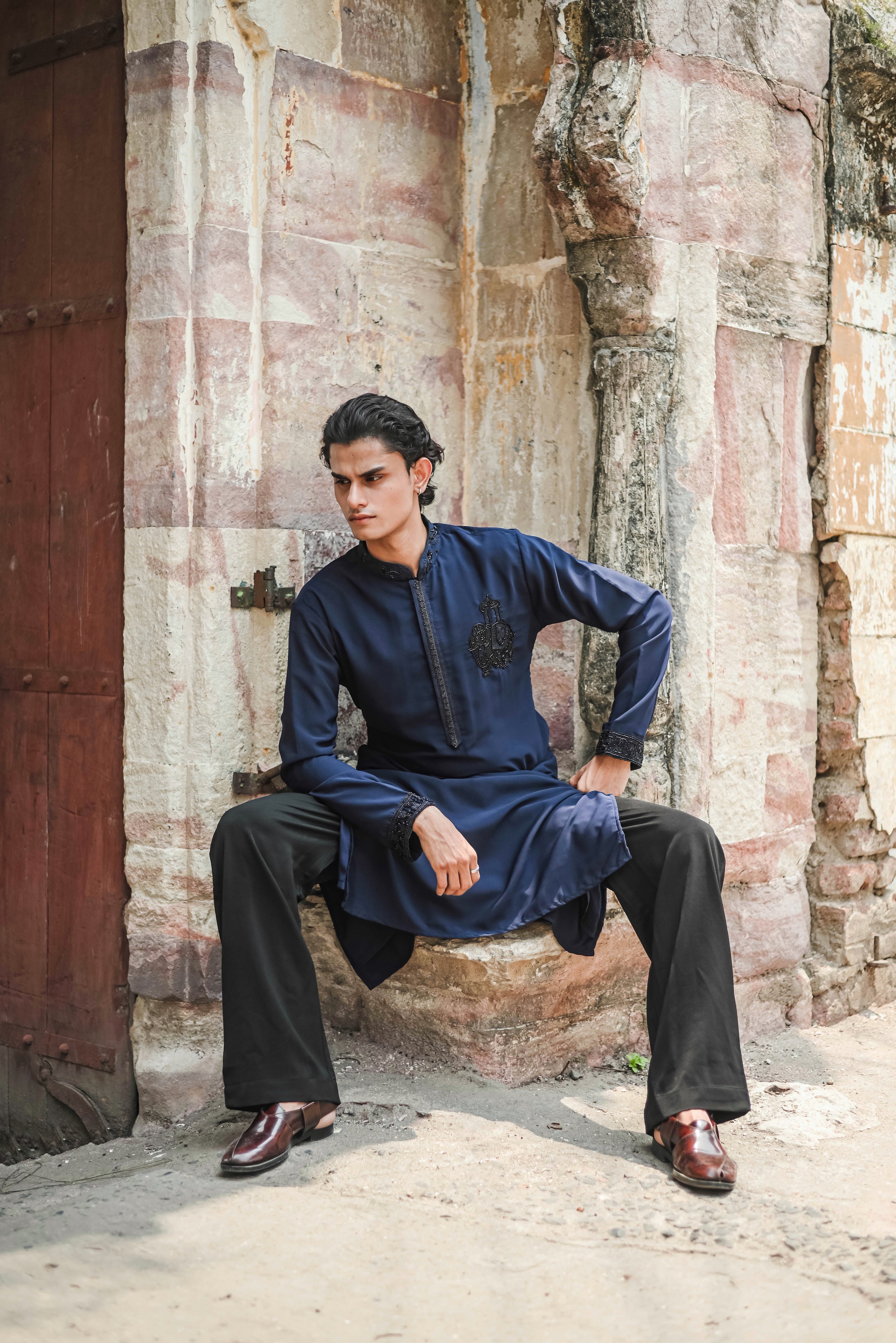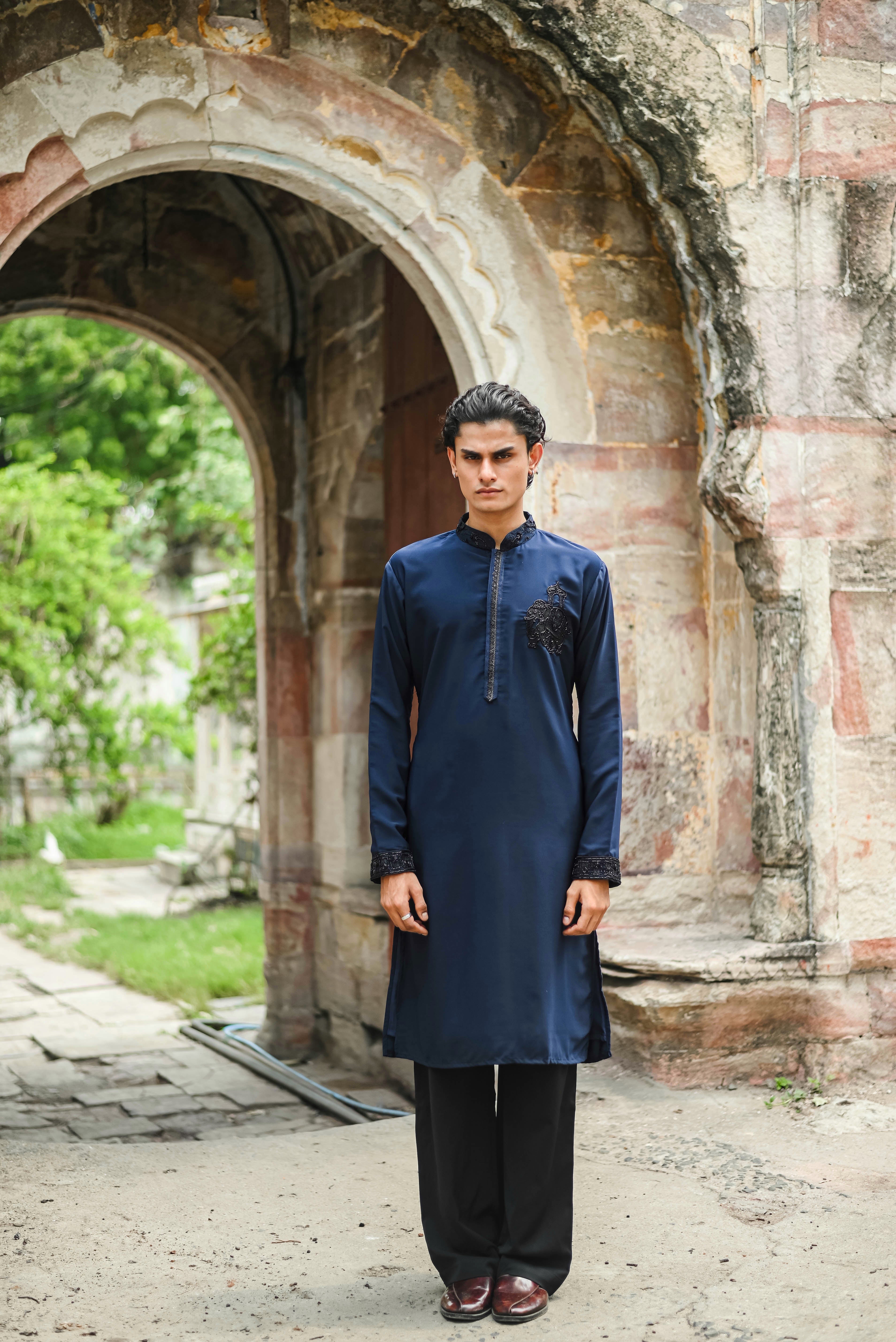 Make a subtle yet striking impression with this Men's Navy Blue Kurta, designed to bring refined elegance to both festive and regular occasions. Featuring delicate bead work embroidery, this kurta is tailored with full sleeves, a mandarin collar, and a straight silhouette that offers timeless appeal. The clean finish, side slits, and rich color make it a versatile choice, whether you're attending a celebration or a formal gathering. Comes with a matching bottom for a complete, well-coordinated look.