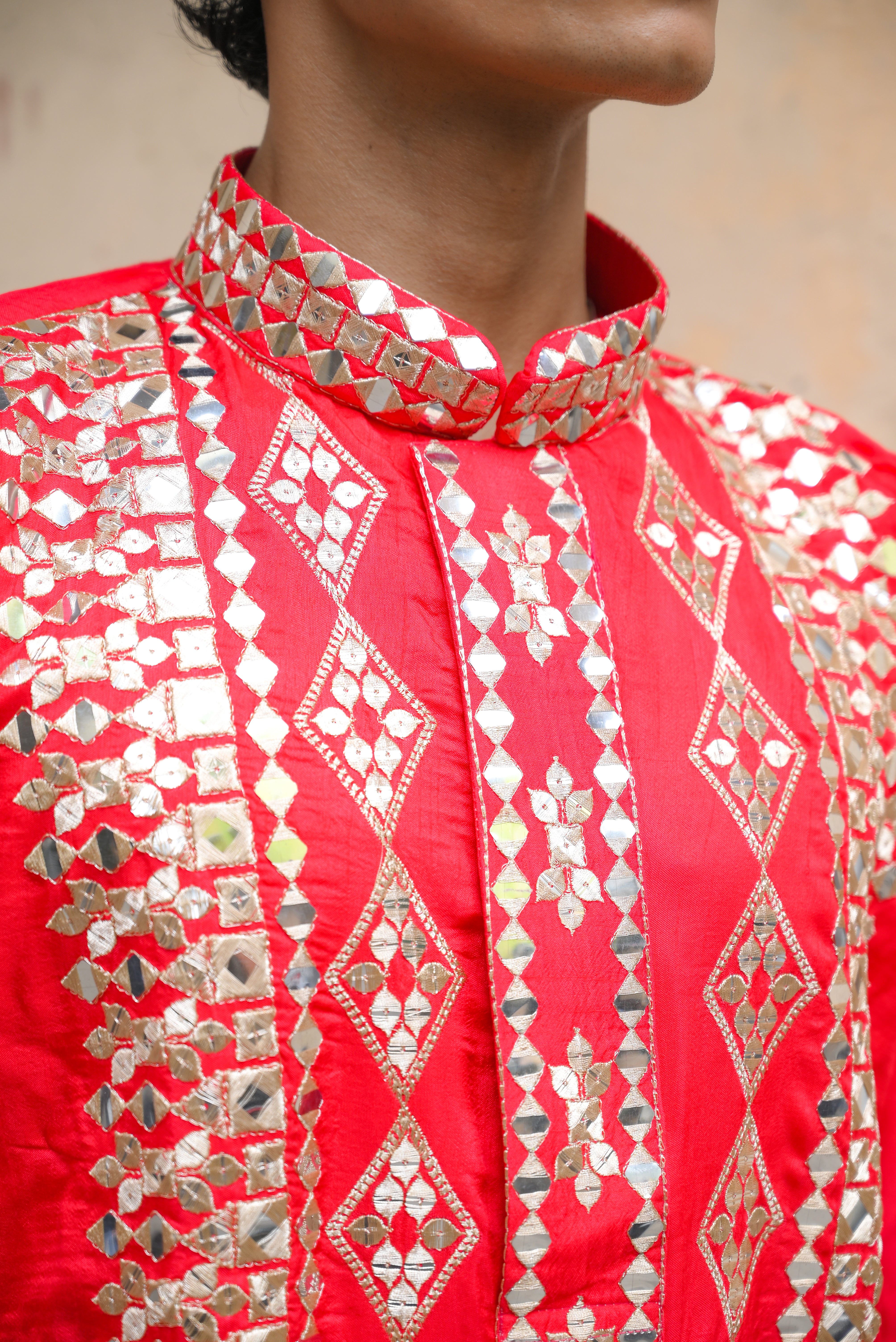Fabric: silk with mirror and gold zari threadwork embroidery